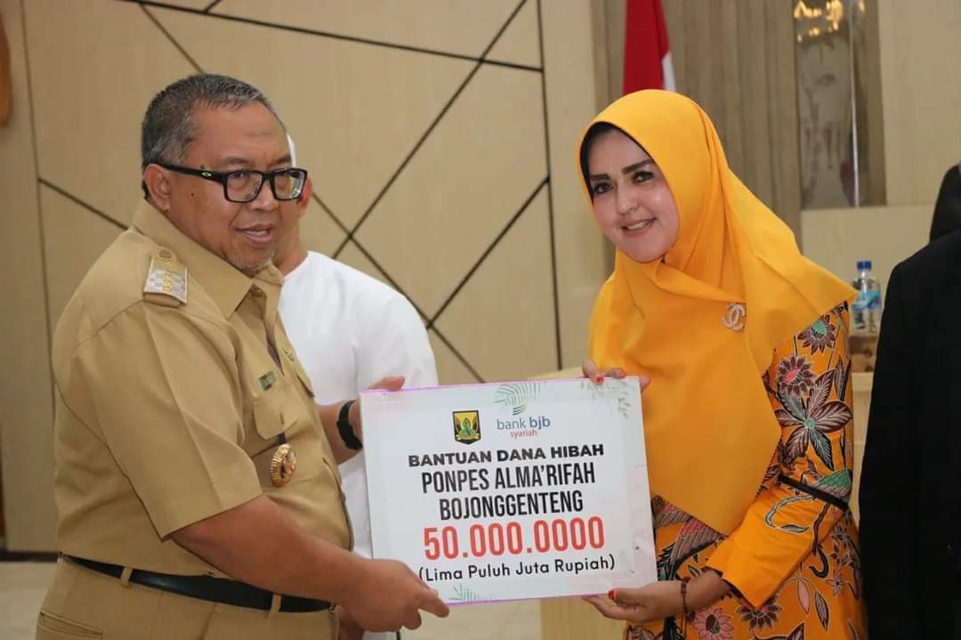 Dalam kesempatan tersebut secara simbolis dilakukan penyerahan bantuan dana hibah kepada 5 lembaga keagamaan di Kabupaten Sukabumi.